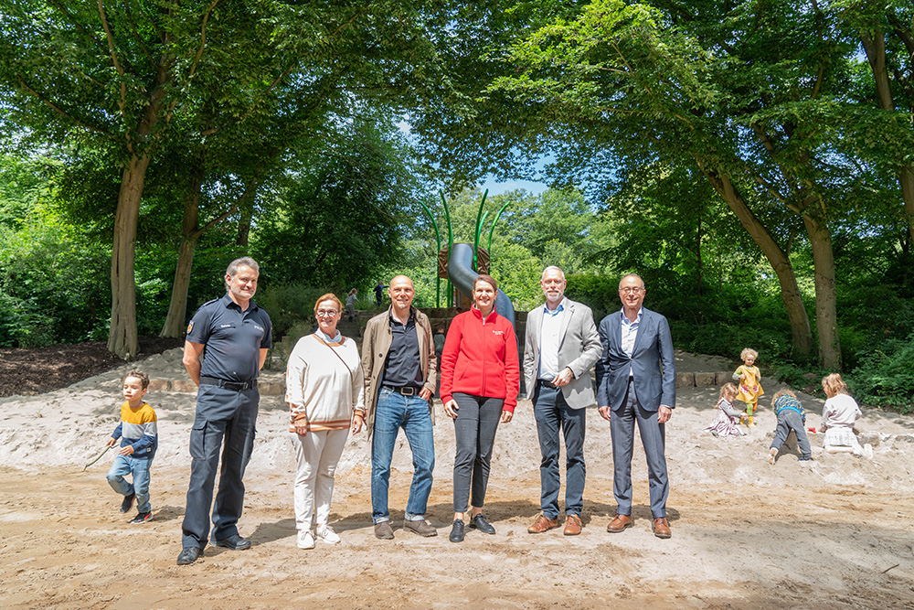 Der sehr beliebte Hang-Spiel-Bereich auf dem sogenannten THW-Spielplatz an der Parkallee im Bürgerpark war nach jahrzehntelanger intensiver Benutzung dringend renovierungsbedürftig. In den letzten Wochen konnte mit der Unterstützung des Landarchitekturbüros Schramm + Partner der gesamte Hangspielbereich mit einer großen Tunnelrutsche neu gestaltet werden. Mit einem Investitionsvolumen von rd. 150.000 € konnte die Attraktivität des Spielplatzes für die nächsten Jahre wieder deutlich erhöht werden.